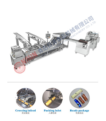 該機是我公司QNF360機型的換代產品。該無托盒包裝機使用伺服電機控制,使該機自動化程度進一步提升、性能更加穩(wěn)定可靠、操作更加簡便。最顯著的特點是:包裝產品尺寸變換非常簡單。 用 途: 適用于多枚餅干的無托盤集合大包裝,方、圓、橢圓等各種形狀餅干皆可。 主要技術參數: 包裝能力:30-100包/分(據包裝膜材質,厚度及包裝規(guī)格確定) 包裝規(guī)格:長100-240mm,寬40-80mm,高40-70mm 總機尺寸:主機部分4020mm*1150mm*1840mm 供料部分3100*580mm*1130mm 裝機總容量:5.2KW, 單相 220V, 50Hz 總重量:1200kg 包裝材料:紙/PE,OPP/PE,OPP/AL/PE等適合于加熱封口的包裝材料 機械特性 l 機械結構的整體設計簡單、合理,操作簡便,調節(jié)方便 l 使用夾運輸送機構,完全可靠的解決了包裝不同長度物品尺寸變換的繁瑣及倒餅的弊病。 l 縱封裝置采用三對牽引輪構成,保證封口高速封合、穩(wěn)定、美觀。 l 精巧的自動供料裝置可將包裝物準確無誤投放于主機進入包裝封口。 l 包裝尺寸調節(jié)方便快捷。 電氣特性 l 送膜、供料采用數字伺服電機控制系統 l 供料部分采用運動控制單元,供料同步、準確、自動記憶 l 變頻調速,方便、準確、可靠 l 色表追蹤點自動定位、自動跟標 l 包裝袋自動測量、記憶 l 供料位置即使在運動中也可隨意調整